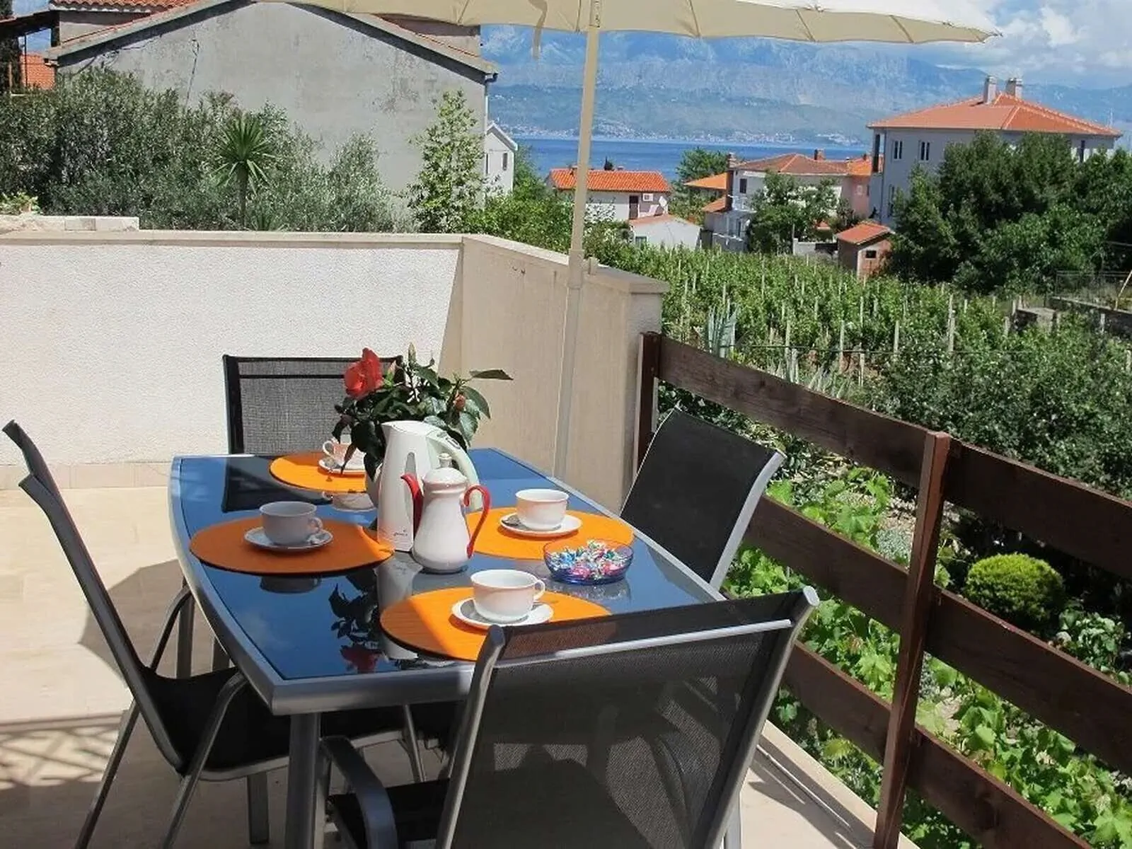 Apartament cu vedere spre grădină cu vedere parțială spre mare cu 1 camera pentru 3 pers.