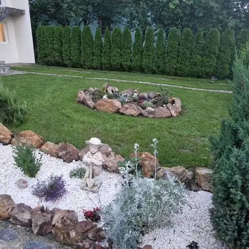 Facilități pentru gătit în aer liber: Ceaun (lemne de foc gratuit), Disc grătar (lemne de foc gratuit), Posibilitatea de a frige slănina (lemne de foc gratuit), Grătar