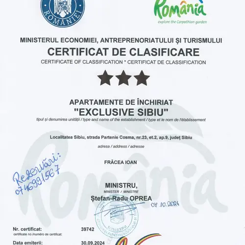 Locație clasificata cu 3 stele de catre Ministerul Turismului Romania.