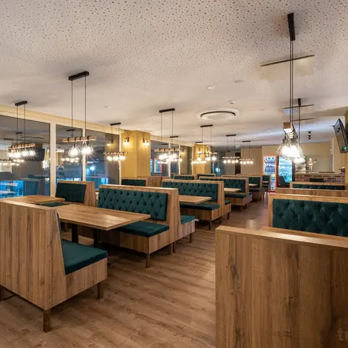 Oaspeții se pot relaxa în zona Wellness & Spa, care include bazin semi-olimpic, piscină cu apă sărată, jacuzzi, saune, salină și terapie pe șezlonguri încălzite. Experiența culinară este completată de restaurantul à la carte, cu preparate rafinate, și de PUB.