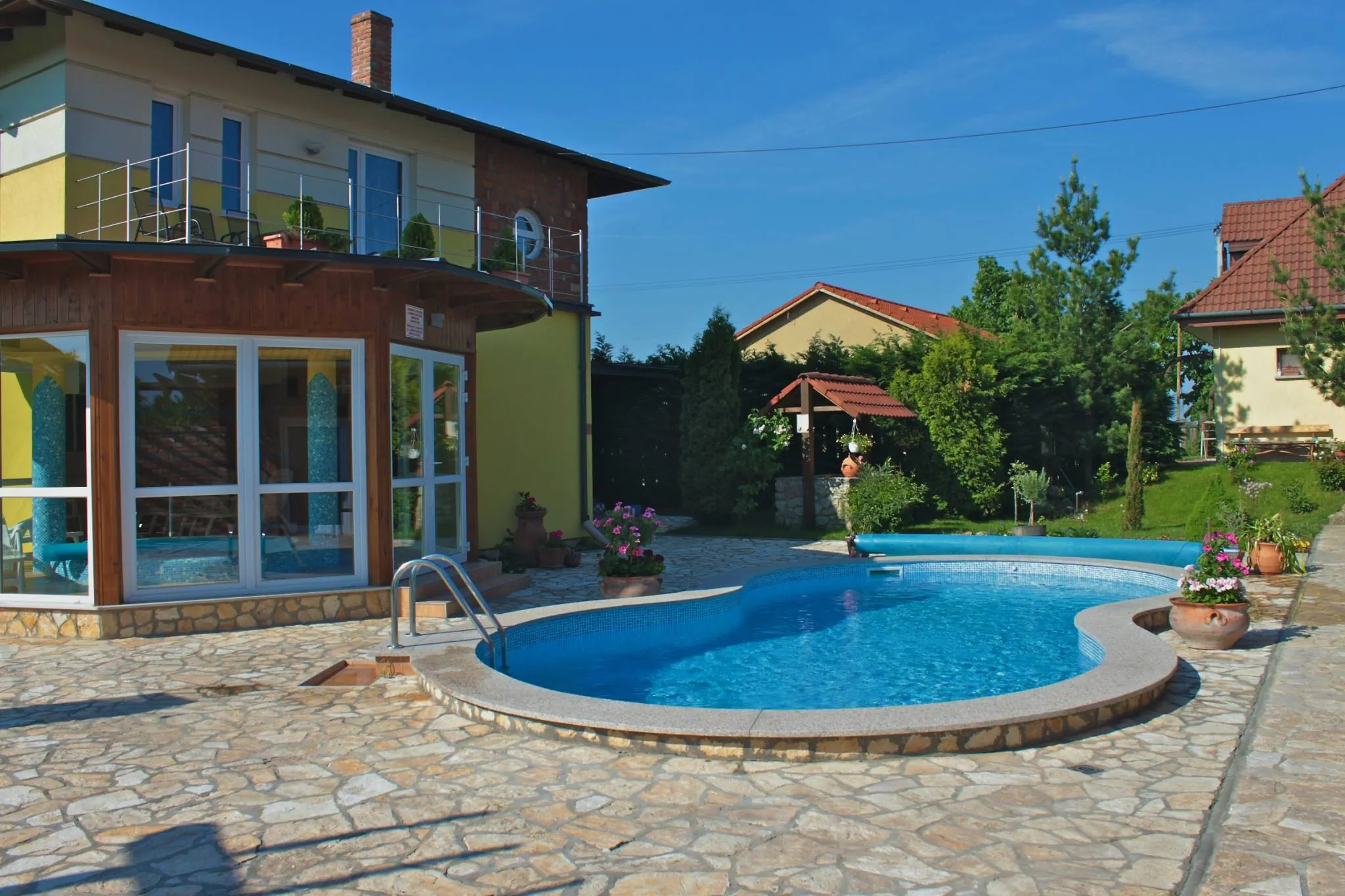 Zona de intretinere: piscina exterioara, terasa unde va puteti bronza, jacuzzi, sauna cu infrarosii si sauna finlandeza, camera de relaxare. Afara puteti gati, puteti da petreceri sau puteti sarbatori nunti.