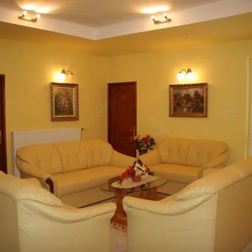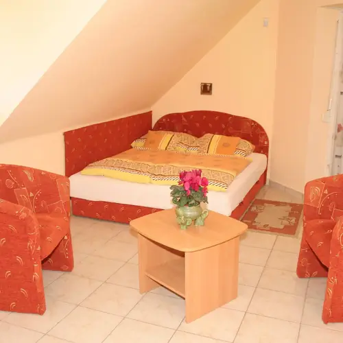 In iunie 2006 s-a deschis cladirea noastra cu apartamente - cu 5 camere cu paturi duble, 2 camere cu 4 paturi si un living - la 200 metri de intrarea in baia termala. Camerele duble pot avea paturi suplimentare, daca este nevoie. O mica bucatarie, tv color si o terasa acoperita apartin fiecarui apartament. In gradina veti gasi o piscina, un spatiu de gratar acoperit si o parcare gratuita.