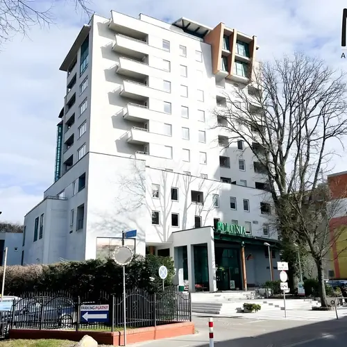 Parcare în apropiere (contra cost, 20 buc., Distanța 100 m 5 zł (~ 5.95 ron)/ora)