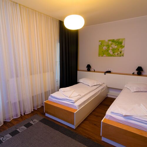 Facilitati: room-service, parcare gratuita (atat in incinta, cat si in fata pensiunii), salon de fumatori si nefumatori.