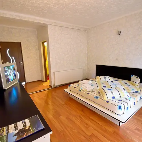 * Cazarea se face in camere deluxe, dotate cu pat matrimonial KING SIZE, in care se pot caza lejer o familie cu 1-2 copii si sunt prevazute cu sistem de climatizare centralizat, care pastreaza tot timpul anului o temperatura constanta de 19-23 grade celsius. Deasemenea, pentru confortul dvs, va oferim si cazare in camere de lux cu pat matrimonial si canapea extensibila , ptr. cazare de grupuri ori familii de 2-3-4 persoane.
