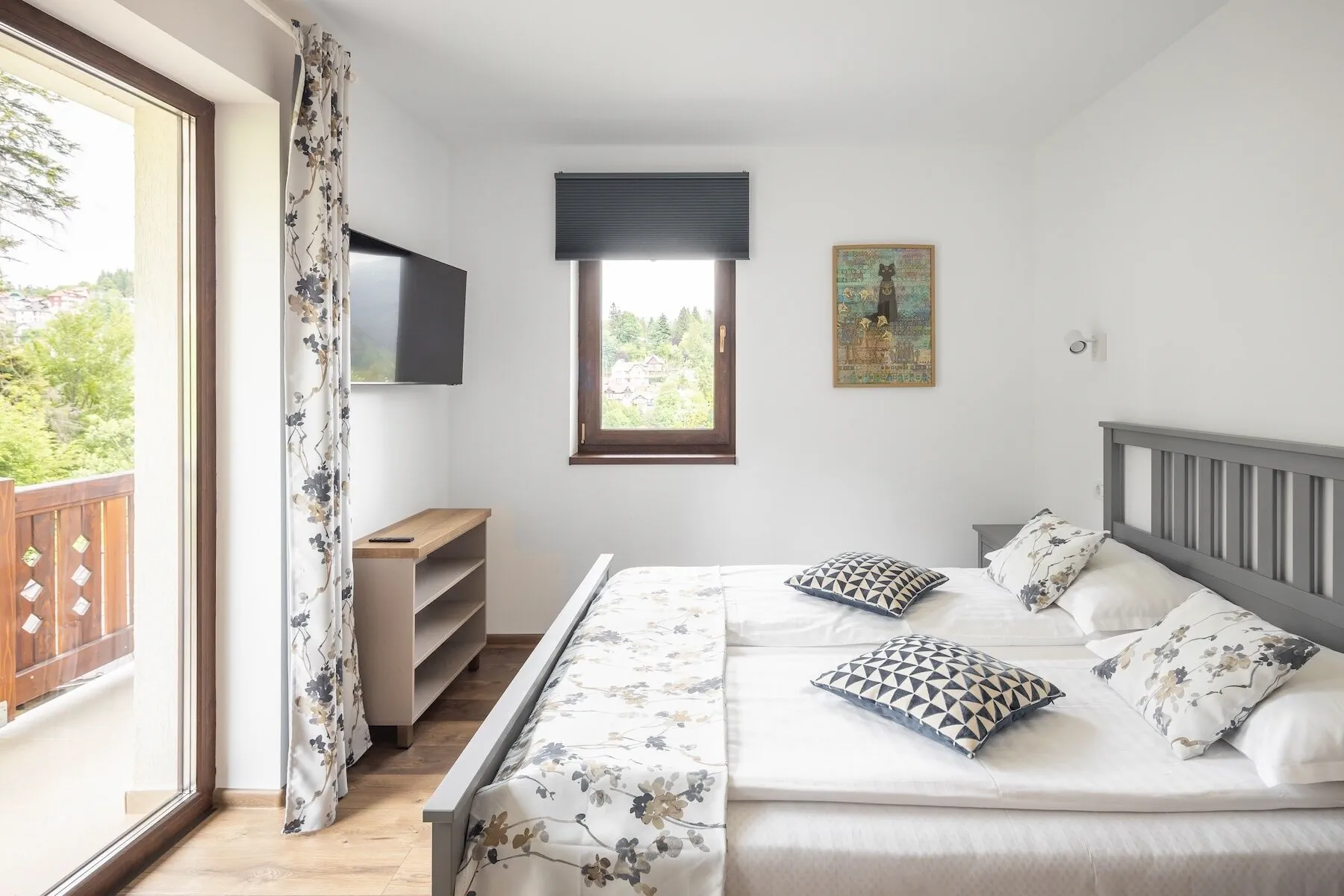 • dormitor cu pat matrimonial kingsize, saltea ultralux ortopedica;
