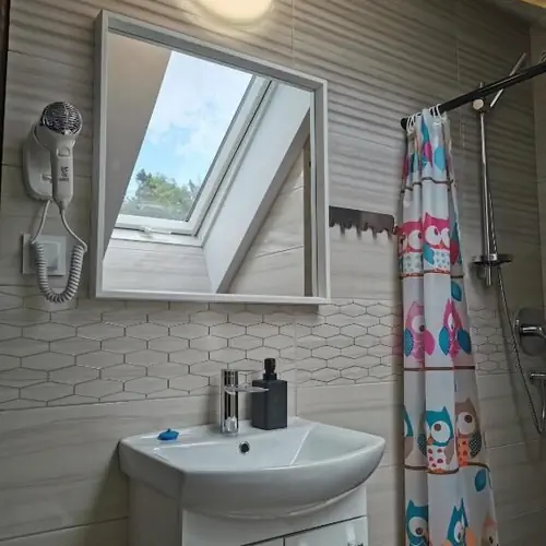 Camere, servicii Pokoje Zacisze Leśne Stegna Stegna ofera 8 camere confortabile si placut amenajate. Sunt primiti cu o deosebita placere atat clientii, cat si animalele acestora de companie (contra cost). Exista parcare privata gratuita. Unitatea va pune la dispozitie internet wireless. Toate camerele dispun de grup sanitar propriu. Mai multe detalii despre facilitatile oferite de Pokoje Zacisze Leśne Stegna (inclusiv cele contra cost), cat si despre dotarile camerelor veti gasi mai jos.