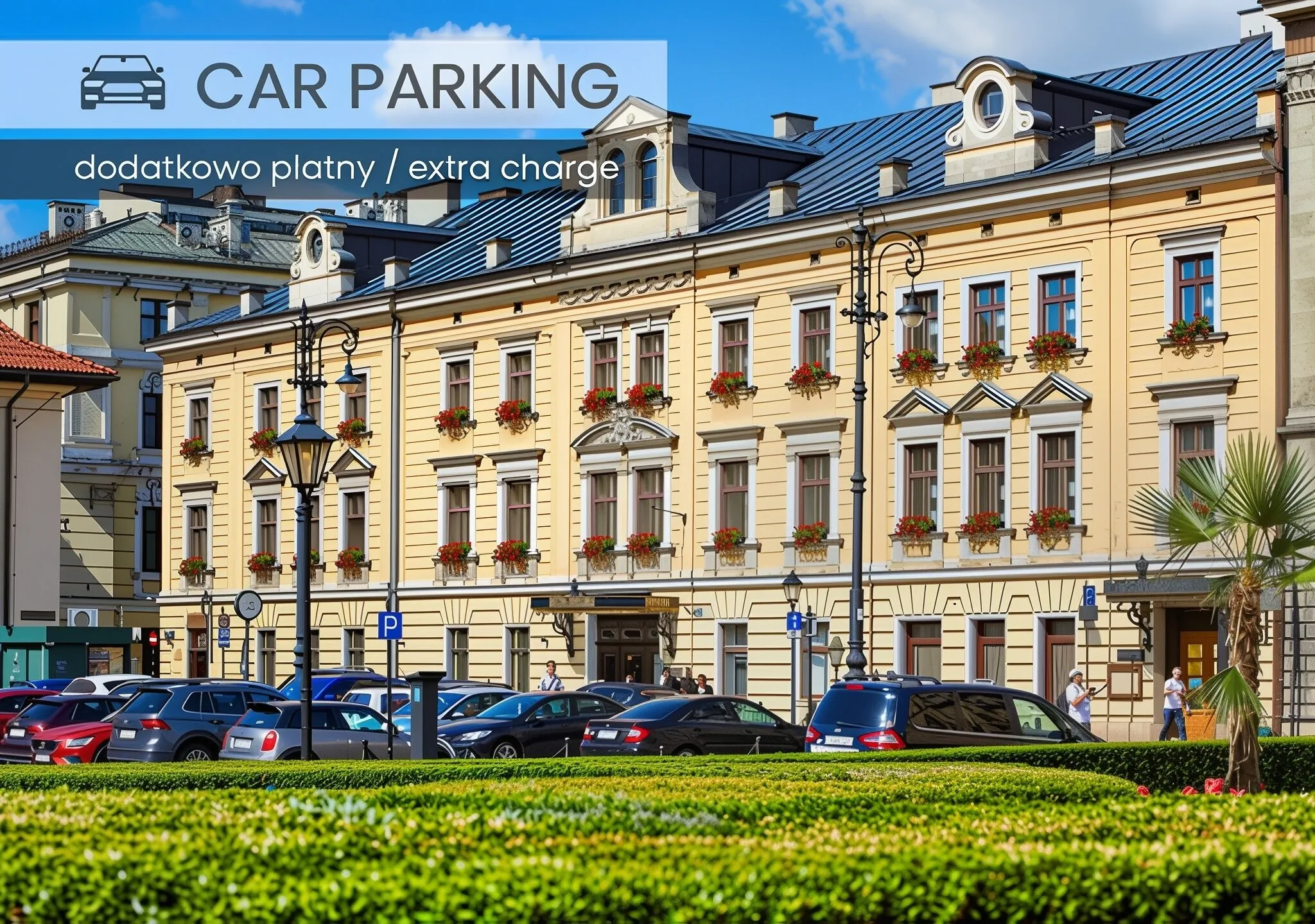 Parcare privată (contra cost, 50 buc., 100 zł (~ 119.40 ron)/zi)