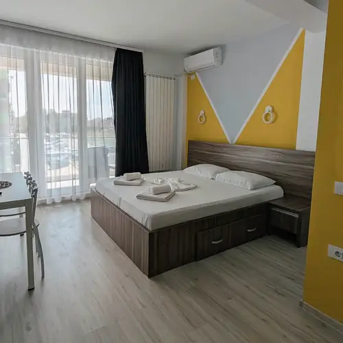 Studioul are o capacitate de 3 persoane ( 2 adulţi si 1 copil) si o suprafaţă de 40 mp. Studioul dispune de un balcon generos cu vedere la mare.