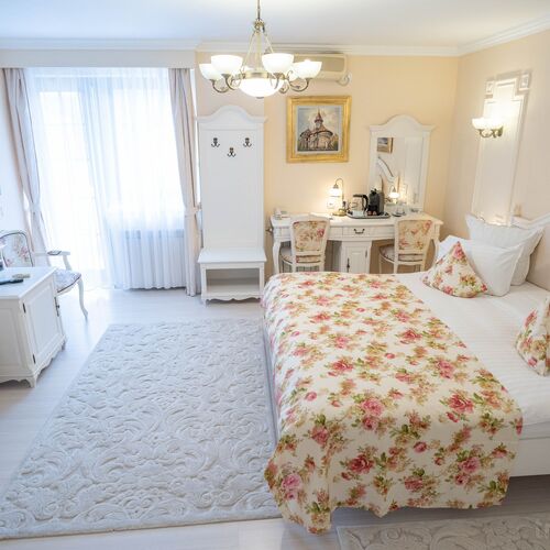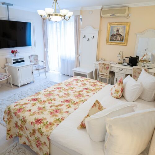La Villa Alice poți găsi camere de 3 stele Single, de 4 stele Double/Twin și de 4 stele King-Deluxe care au și dotări de 5 stele, mobilier din lemn masiv alb într-un stil apropiat epocii lui Ludovic al XV-lea cu pat dublu King-size, Smart TV 4K cu diagonala de 164 cm (65 inch) cu acces la Netflix, YouTube și altele cu contul personal, Blu-ray player, seif electronic mare, baie de 4 m - 3,30 m cu cadă și pentru două persoane cu hidromasaj și Jacuzzi precum și o cabină de duș modernă și foarte spațioasă. Pentru a vedea exact cum arată camera în care vrei să stai dă click pe poza cu tipul de cameră dorit și vei vedea cum arată din diferite unghiuri precum și dotările camerei și băii acesteia.